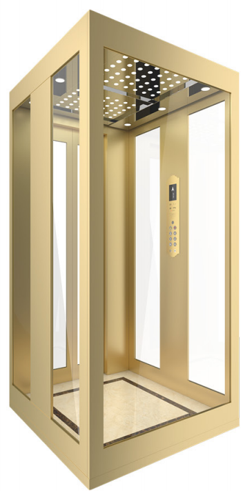 Car Walls : Front walll- sandblasted titanium hairline stainless steel; Side wall-sandblasted titanium hairline stainless steel,glued safety glass; Rear wall-sandblasted titanium hairline stainless steel,glued safety glass